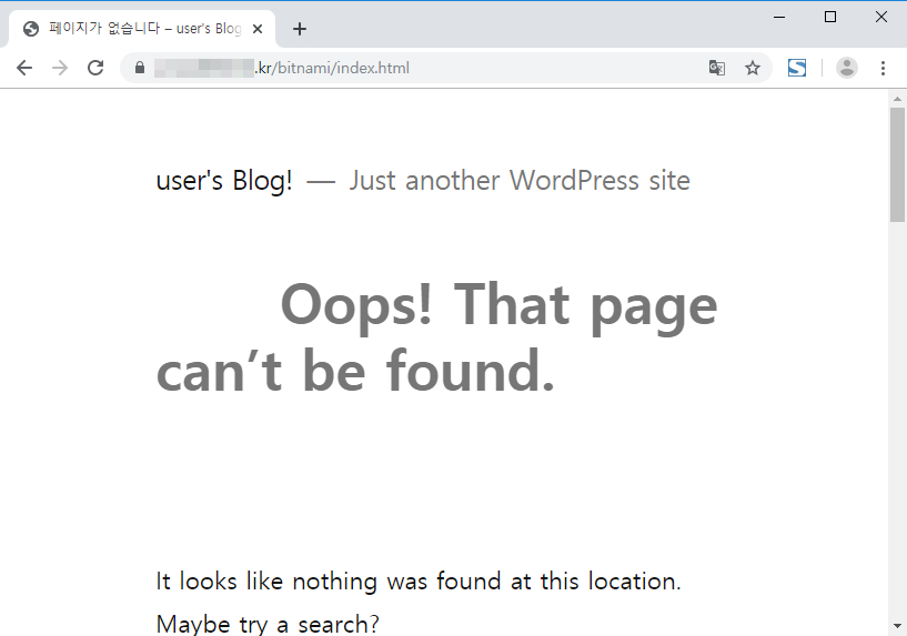 다시 해당 페이지를 접속해보면 이제는 없는 페이지라고 나옵니다. 비트나미 페이지를 그렇게 보내드렸습니다.