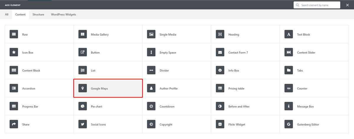 Uncode에서는 기본적으로 구글맵 API Key를 입력할 수 있는 란이 있으며, Page Builder에서 구글맵 엘리먼트를 지원합니다.