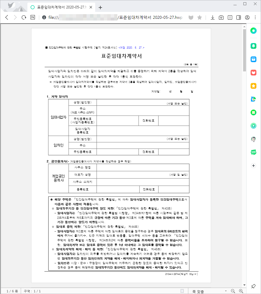이사 다닐 때 보는 표준 임대차 계약서 파일을 샘플로 보겠습니다.