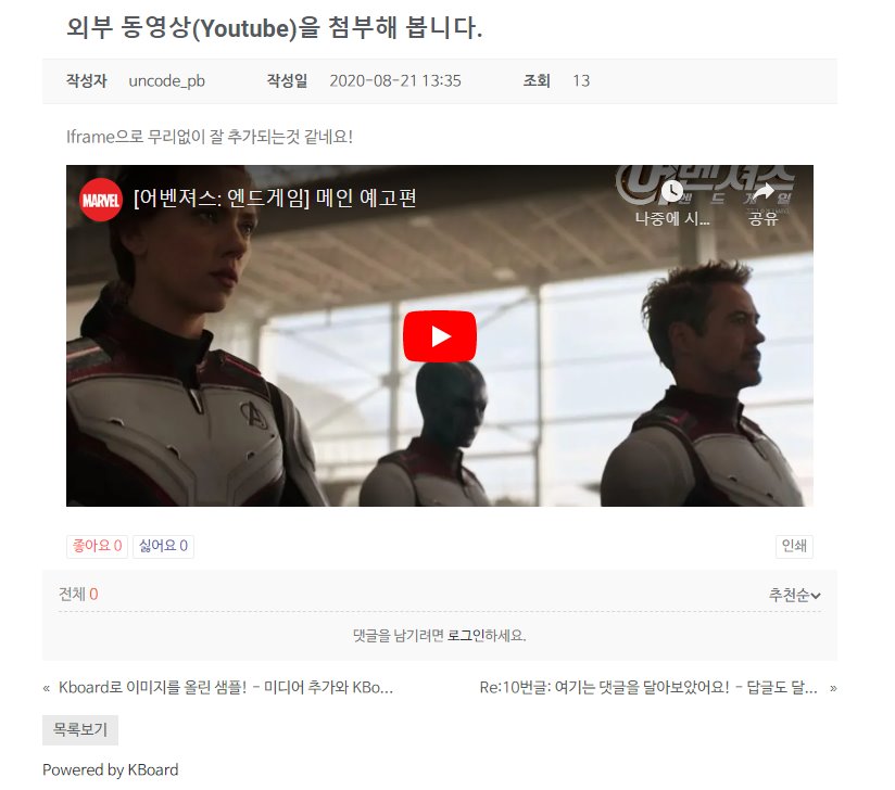 외부 유튜브 동영상을 링크 걸면 잘 나옵니다.
