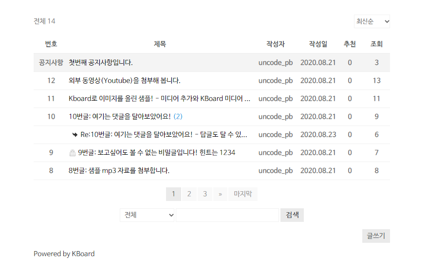 이번 글에서는 KBoard를 직접 설치해보고, 기본 게시판 디자인을 CSS를 이용하여 변경하는 방법에 대해서 살펴보겠습니다. 거창한 커스터마이징은 아니고, 기본 게시판의 CSS를 살짝 바꾸는 정도만 다루겠습니다.