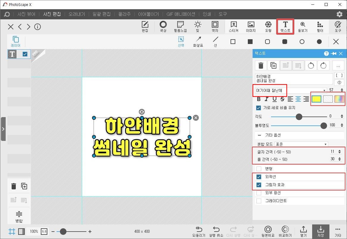텍스트 입력 후에 크기를 조절해도 상관없습니다. 포토스케이프에서 알아서 텍스트 크기까지 변경합니다.