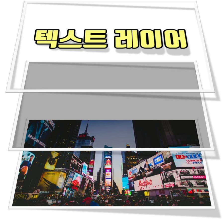 이런 경우에는 배경 이미지와 텍스트 사이에 투명도를 가지고 있는 레이어를 하나 추가해 주면 됩니다. 아래 그림과 같은 방식이죠!