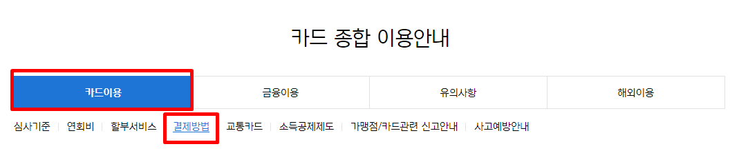 여기서 카드이용 ▷ 결제방법을 클릭해주세요!