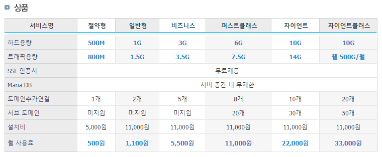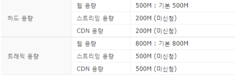 예전보다 하드와 트래픽 용량이 다소 증가되었네요!
