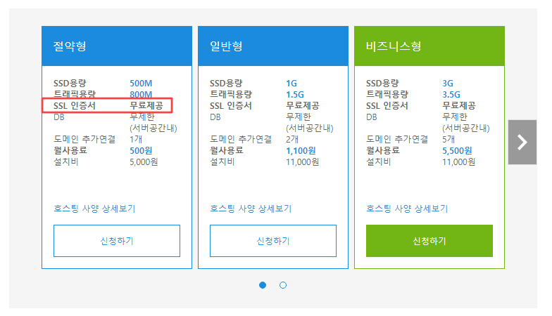 2. 호스팅 상품, 상세 사양 그리고 SSL