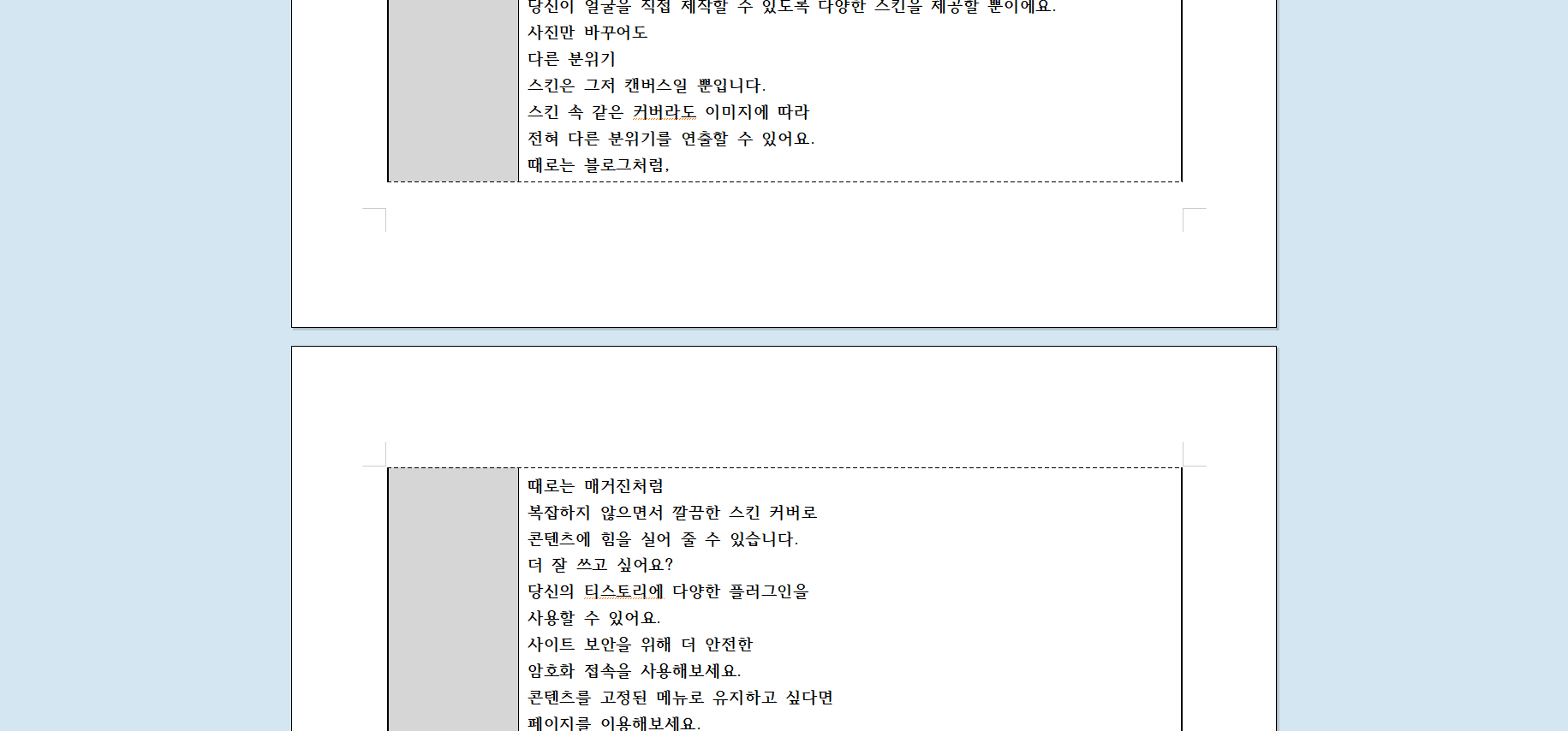 표를 나눈 후 다음 페이지에 가면 아래와 같이 제목 줄 없이 내용이 보이게 됩니다.