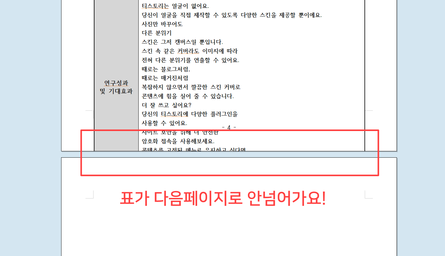 표가 길~게 되어있는 경우, 다음 페이지로 연결되어 표가 나타났으면 좋겠는데...
