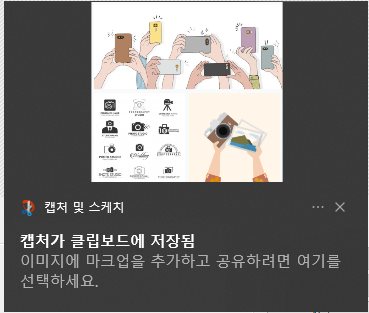 또한 자체적으로 저장 기능도 제공하고 있는데요, 캡처를 하게 되면 화면 우측 하단에 아래와 같은 식으로 알람이 나오게 됩니다.