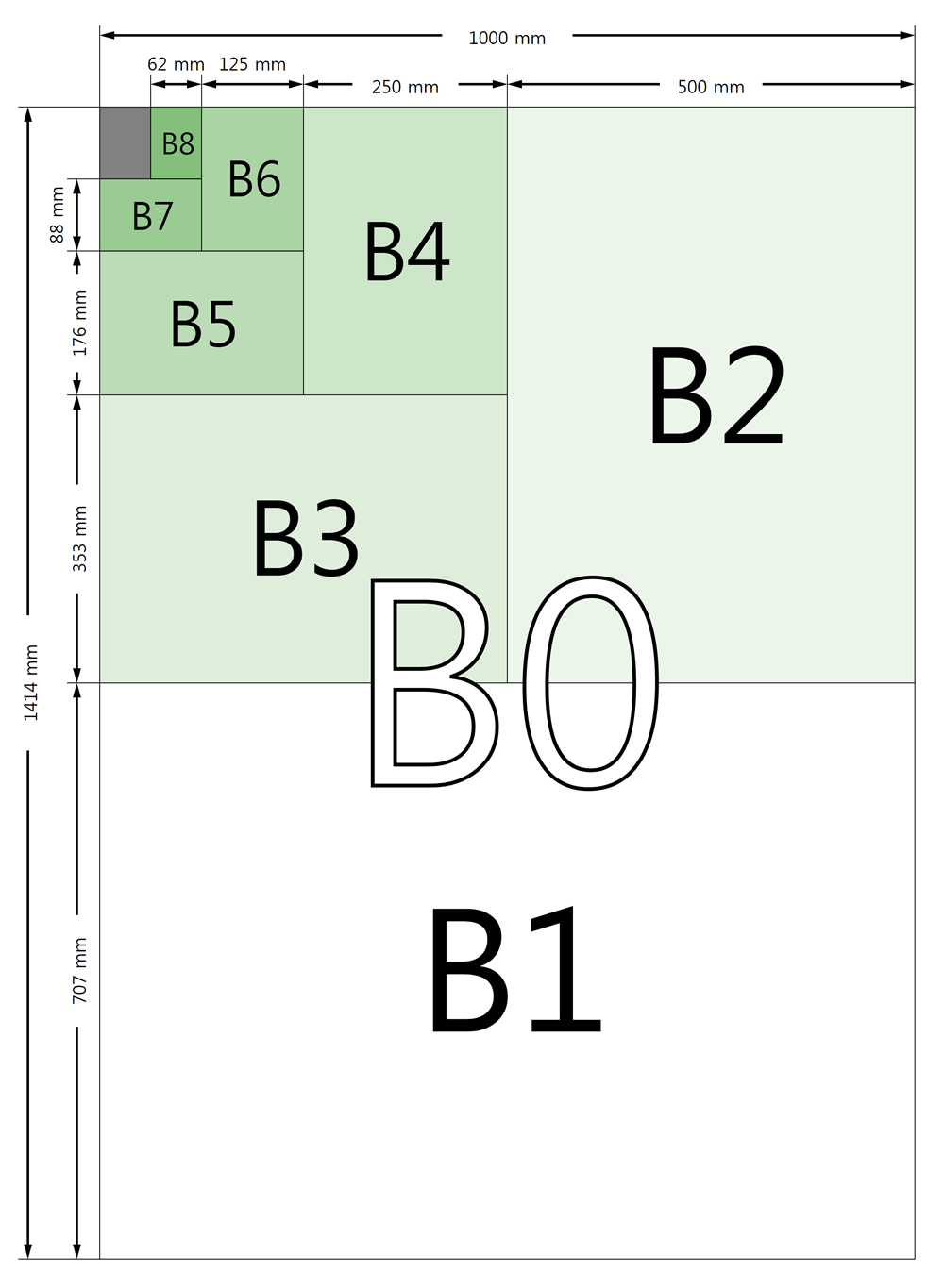 | B0 | 1000 × 1414 | B6 | 125 × 176 |