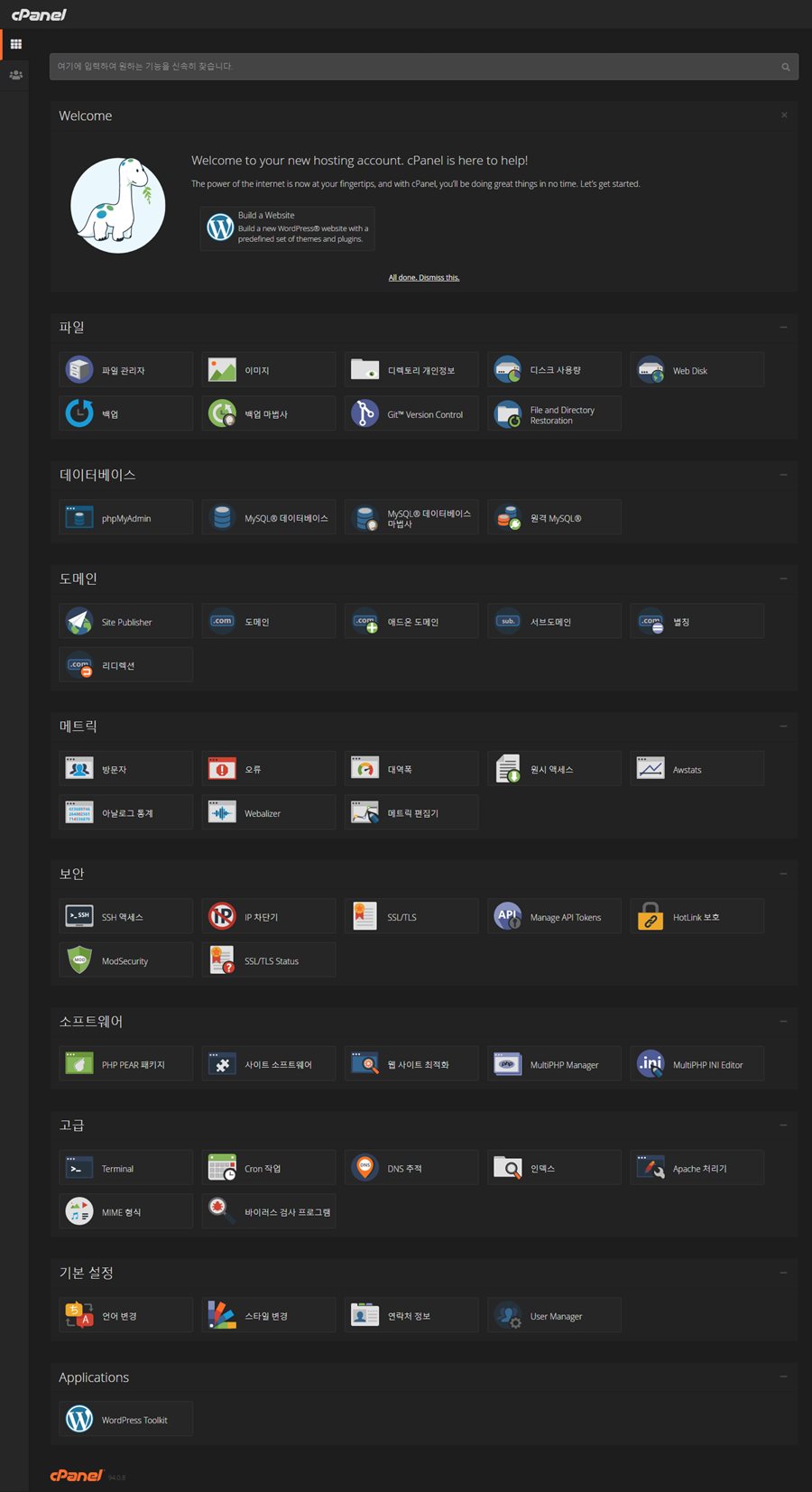 이전 글에서 호스팅케이알의 새로운 리눅스 웹 호스팅을 설치하고 cPanel 대시보드를 맛보기로 살짝 감상만 해보았습니다. 하지만 실제 목적은 cPanel 띄우기가 아니라 워드프레스를 설치, 운영해