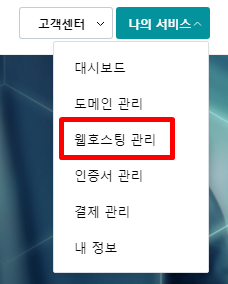 즉, cPanel 별도 접속은 불가능하고 호스팅케이알 홈페이지에서만 접속이 가능합니다. 그러면 한번 들어가 봐야겠죠? 호스팅케이알 로그인 상태에서 "나의 서비스 → 웹호스팅 관리"를 클릭해봅니다.