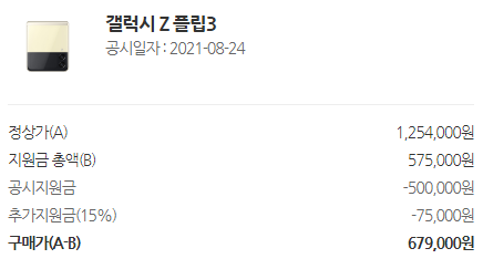 자급제폰을 살 것이 아니라면, 공시지원금이 중요하겠죠? 이동통신 3사는 갤럭시 Z 플립3에 대해서 대략 25~50만 원의 공시지원금을 지원하고 있습니다.