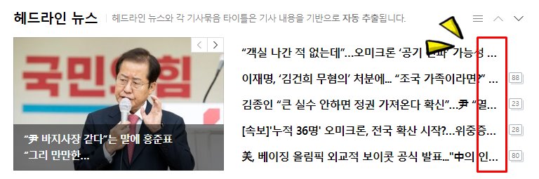 가장 흔하게 볼 수 있는 경우가 제목을 한 줄로 제한하는 경우입니다. 아래는 네이버 뉴스 홈에서 가져온 화면인데요, 우측에 기사의 타이틀 부분이 "..."으로 표시되어 있는 것을 확인할 수 있습니다.