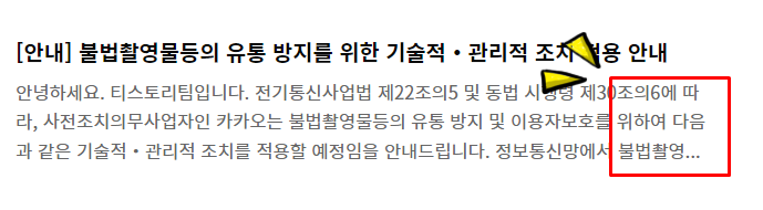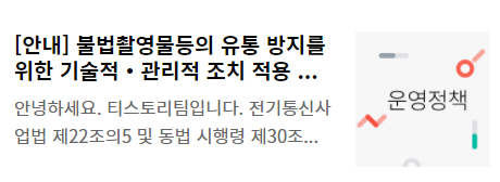 예를 들어 볼까요? 티스토리의 공지사항의 게시물 목록 중 하나입니다. 본문 요약 내용의 3번째 줄에 "..." 표시가 나타나고 길이는 3줄로 제한되어 있는 것을 알 수 있습니다.