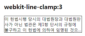 관련된 4가지 CSS 속성들을 모두 적용하고, line-clamp값을 3으로 적용하면, 다음과 같이 텍스트가 3줄로 제한되어 나오게 됩니다. 말줄임표까지 자동으로 잘 들어가 있네요.