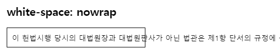 우선 전체 문단을 한 줄로 표시하기 위해서 "white-space: nowrap"을 설정해줍니다. 이를 적용하면 다음과 같이 텍스트가 한 줄로 길게 나타나게 됩니다. div 영역 밖으로 뛰쳐나가긴 했지만...