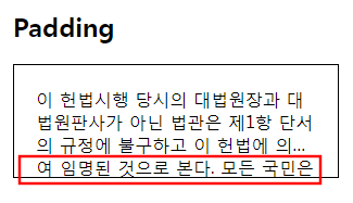 padding이 들어간 경우에는 "overflow:hidden"에 의해 숨겨졌던 콘텐츠가 padding 영역에서 보이게 됩니다. 따라서 말줄임표 이후의 내용이 보이게 되는 상황이 발생하게 됩니다.