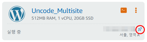 연결이 되었다면 아래와 같이 홈화면의 인스턴스 화면에서 IP옆에 고정 IP를 표시하는 아이콘이 생기게 됩니다.