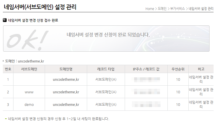 정상적으로 이루어졌다면 아래와 같이 새로운 서브도메인이 추가된 것을 확인할 수 있습니다.