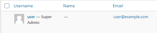 관리자 이메일의 경우, Network Admin>Users에서 확인해보면 기존 Super Admin의 Email이 user@example.com으로 되어있습니다. 일단은 동일한 이메일로 설정해줍니다.