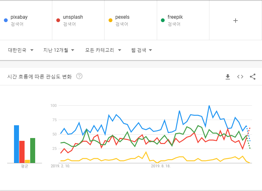 일단, 트렌드로만 보면 Freepik > Pixabay > unsplash > pexels 순서입니다.
