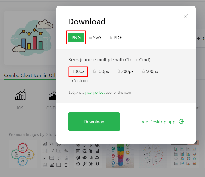 무료의 경우, 대부분 100 X 100 px 까지만 지원합니다. 좀 큰 아이콘을 원한다면 아쉽지만 유료 결제를 해야 합니다.