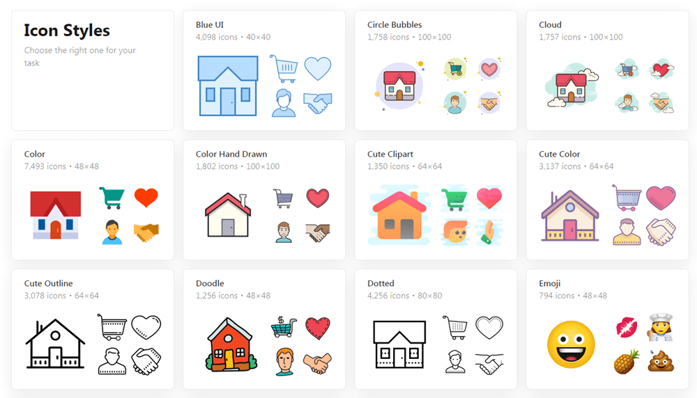 Icons8에서는 다양한 스타일에 대한 아이콘을 제공합니다.