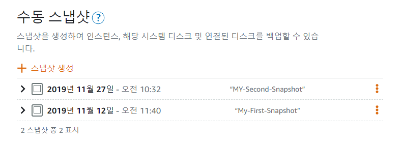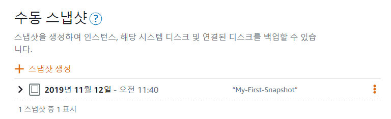 ✅ 수동 스냅샷을 하나 더 추가해봅니다.