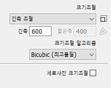 가로 조절을 선택하는 경우에는 "가로" 입력창만 활성화됩니다.