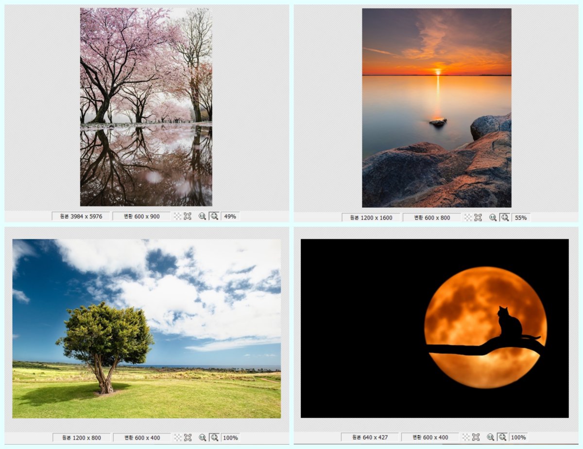 앞에서 4번 이미지는 세로 조절 또는 짧은축 조절을 하는 경우에는 원본 이미지가 확대되어 변환되었던 것을 확인할 수 있습니다. 그러나 "줄이기"에서는 변환하려는 원본 이미지보다 변환 후의 예상 크기보다 큰 경우, 확대하지 않고 원본 크기를 그대로 둡니다.