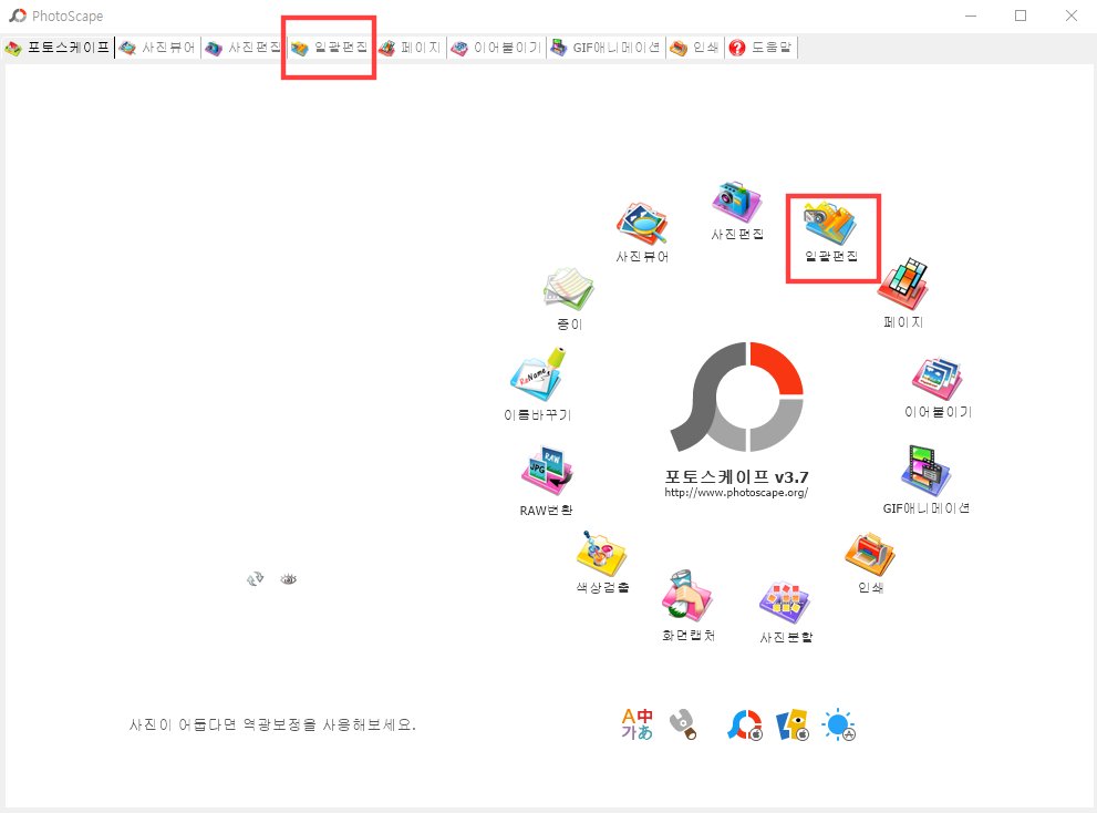 먼저 포토스케이프를 실행한 후 일괄 편집을 선택합니다.