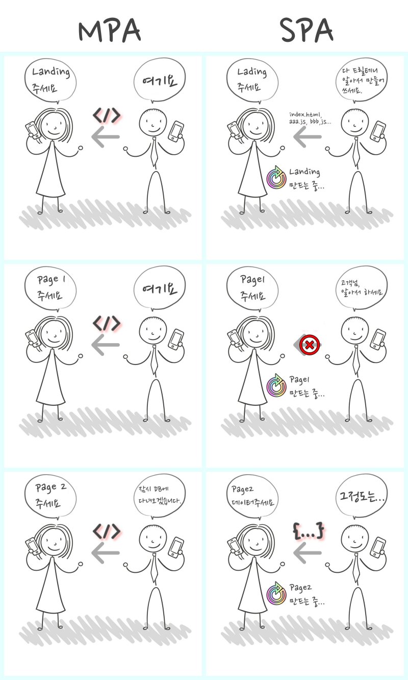 아래 그림은 개념적으로 MPA와 SPA를 비교한 것입니다.